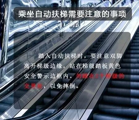 无论上下方向,扶梯的一侧下方都应有红色紧急停止按钮,危险关头可果断将其按下。