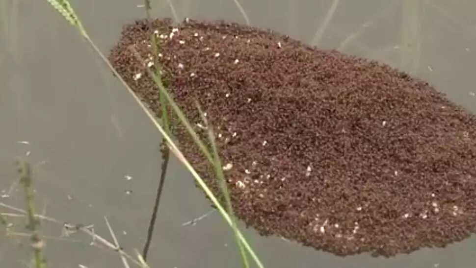 水位一旦上涨,这些蚂蚁就相互抓住对方形成漂浮的浮岛,它们可以一直这样维系几天时间,直到飘到一个更高的地方。这种蚂蚁咬人是非常疼的,专家提醒,如果见到这样的蚂蚁浮岛飘过来千万不要试图把它打碎或者触碰到它,否则它们可能会攻击你。